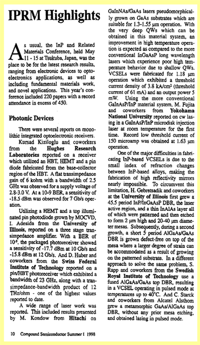 1998年Compound Semiconductorの中の国際会議IPRM'98速報